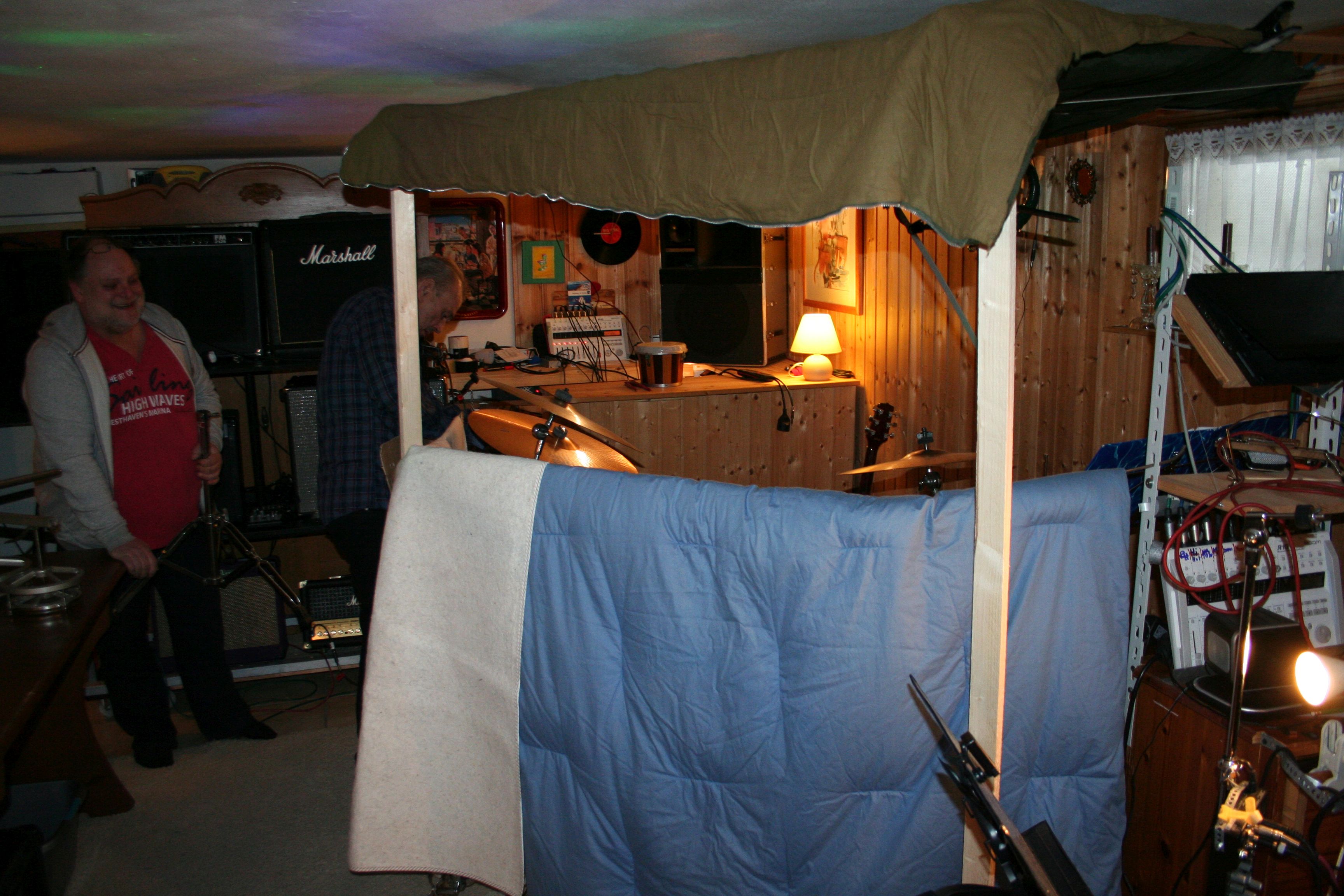Das akustische Schlagzeug wird mittels diverser Maßnahmen etwas abgedämpft...